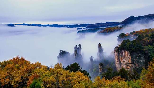 先说下这两种不同的天气,大晴天的时候视野是相当好的,适合去玻璃桥跟玻璃栈道,还可以住山顶,看那拥有无限生命力初生的朝阳。而且张家界那绝对优质的生态环境,空气中都弥漫着阳光跟欢乐的气息。如果碰到阴雨天,张家界也一点儿都不显得压抑,反而在森林公园山顶能看到最美的云海奇观。